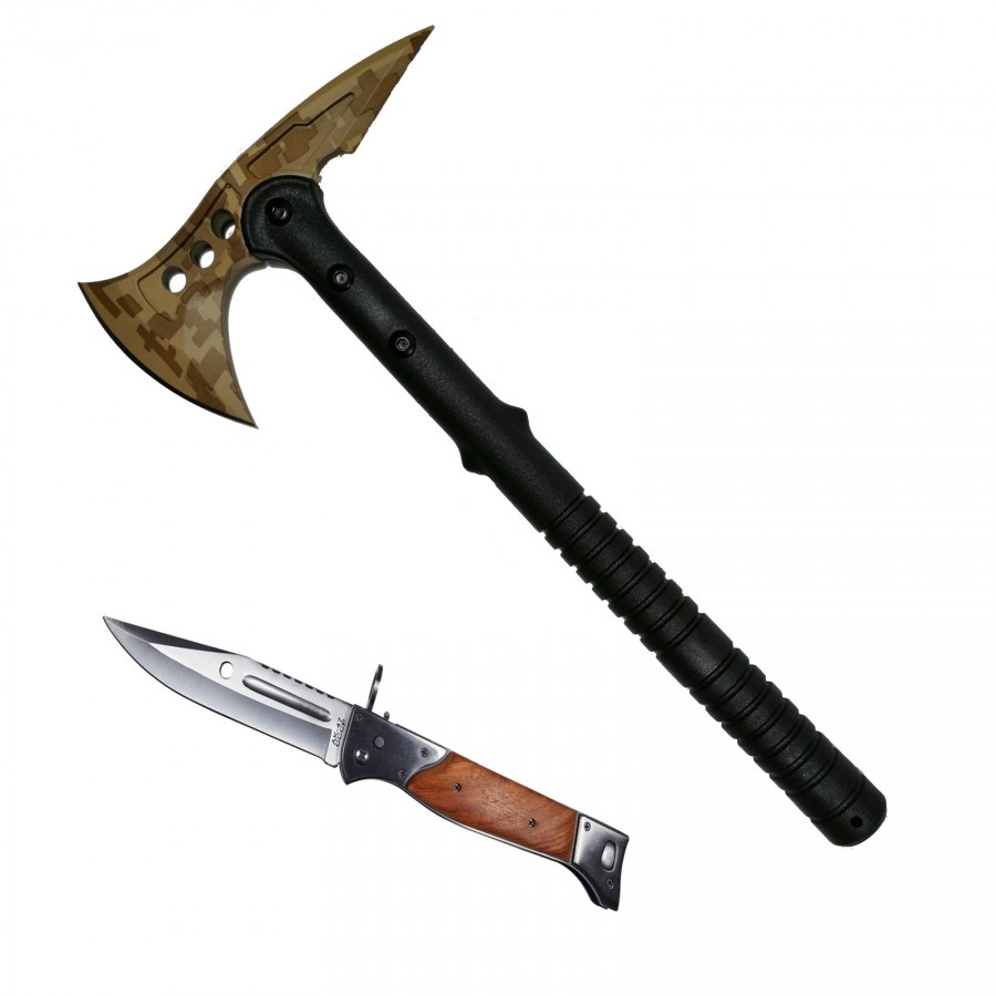 Set Topor Survivor Desert Camo si briceag AK-47 , 34 cm, teaca inclusa