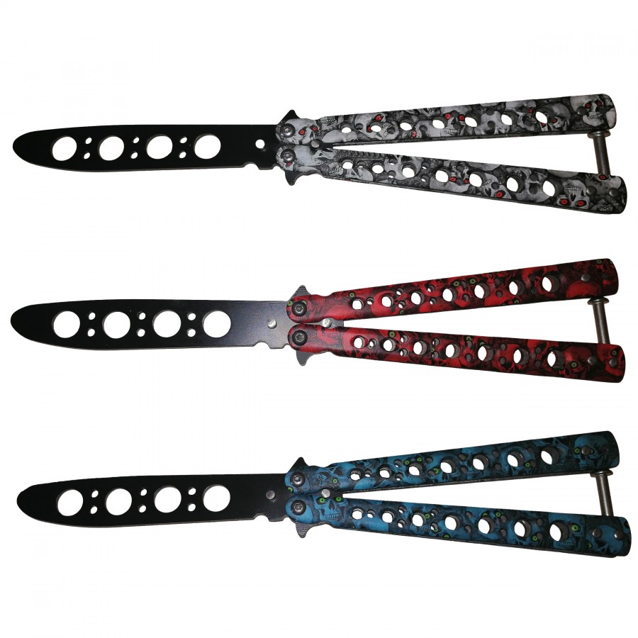 Cutit, Briceag fluture, Butterfly, Scared Skulls, pentru antrenament, 22 cm, gri