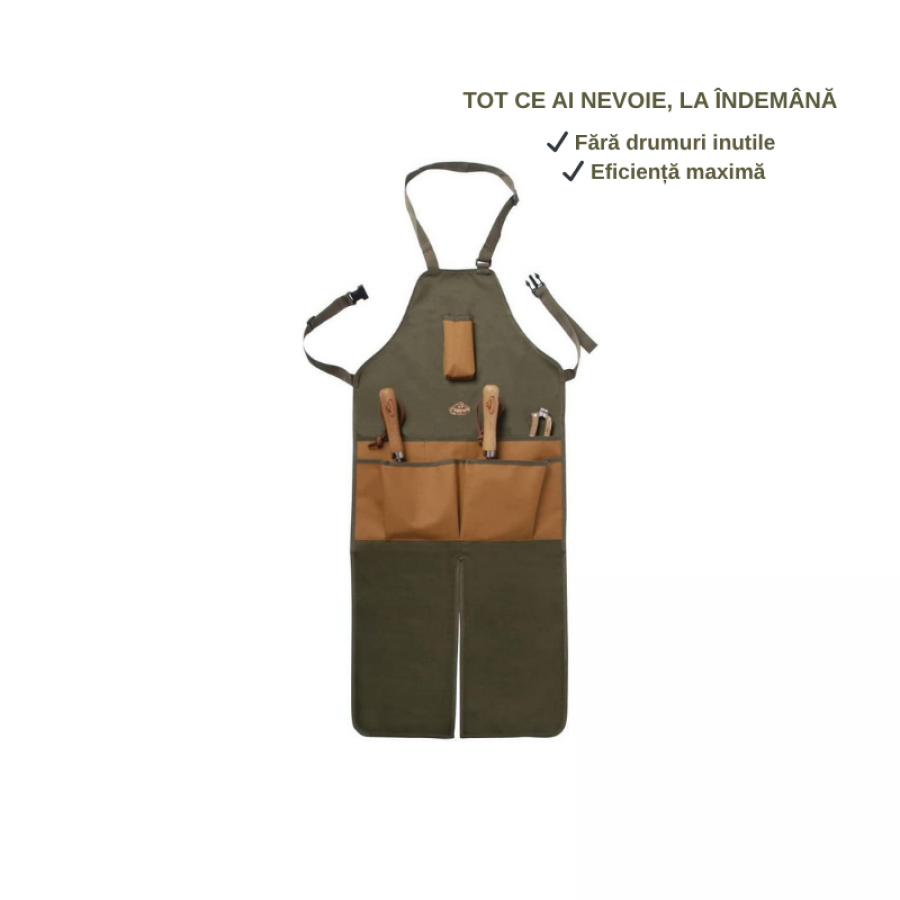 Acest șorț de grădinărit multifuncțional este alegerea perfectă pentru oricine vrea eficiență și confort. Cu un design inteligent și buzunare multiple spațioase, vei avea mereu toate uneltele la îndemână.