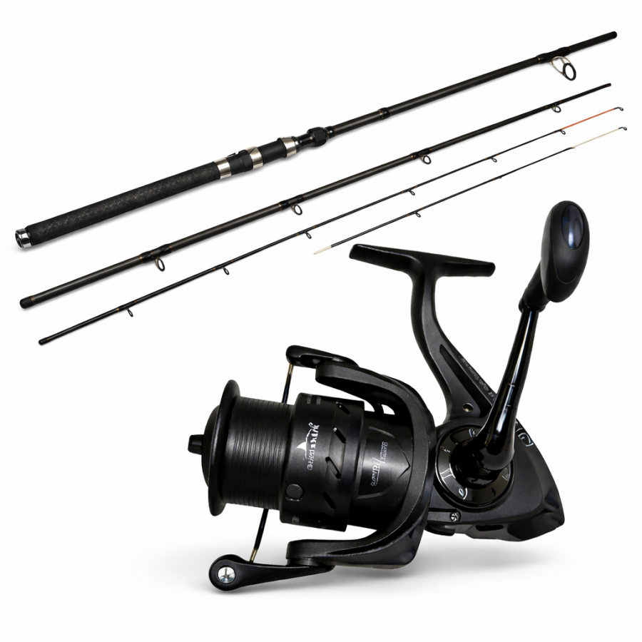 Acest pachet feeder profesional îmbină o lansetă din carbon ajustabilă 3.6–4.1 m cu o mulinetă BLACK EAGLE 6000 Long Cast, formând un ansamblu solid, stabil și eficient în partide solicitante.