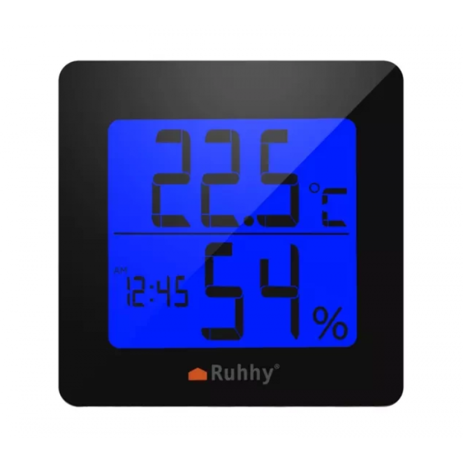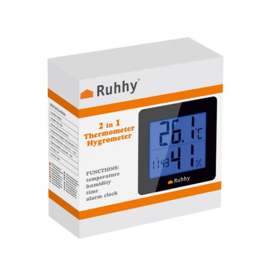 Cu un design ce amintește de un ceas de birou elegant, acest aparat oferă informații clare despre temperatură și umiditate, având în plus funcții de memorie și opțiuni de personalizare.