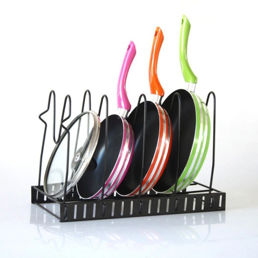 Suportul a fost conceput pentru a va ajuta in organizarea tigailor, cratitelor, capacelor si tocatoarelor in 3 moduri. Se poate folosi atat pe orizontala, cat si pe verticala pe verticala, avand cate 4 rafturi pe ambele parti sau toate pe o parte.