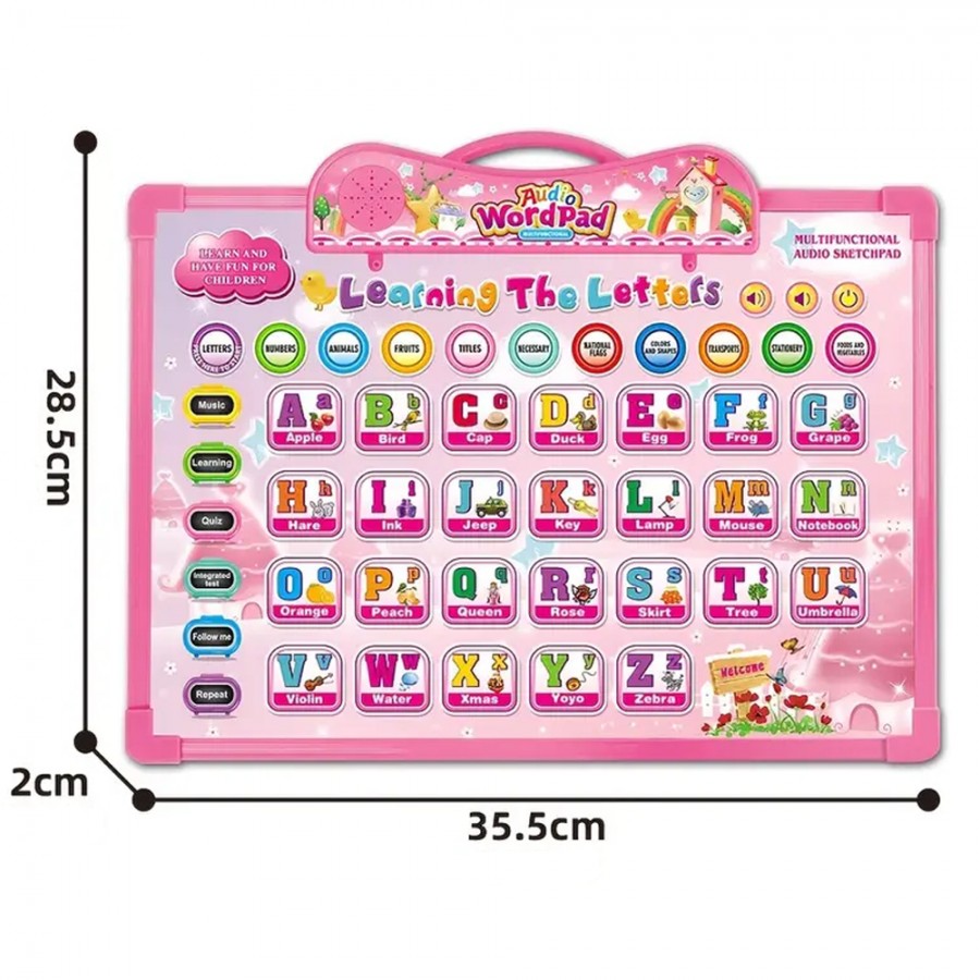 Cu ajutorul tableitei se pot invata cifrele, literele si alte multe cuvinte din vocabularul de baza al limbii engleze (pronuntie si scriere) cat si intrebari interactive pentru verificarea cunostintelor.
