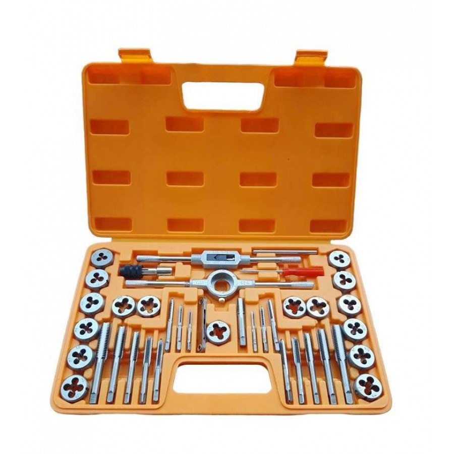 Trusa de filiere și tarozi, format din 40 de piese, este perfect pentru curățarea și tăierea filetelor interne și externe și poate fi folosit în scopuri auto și în atelierele mecanice generale