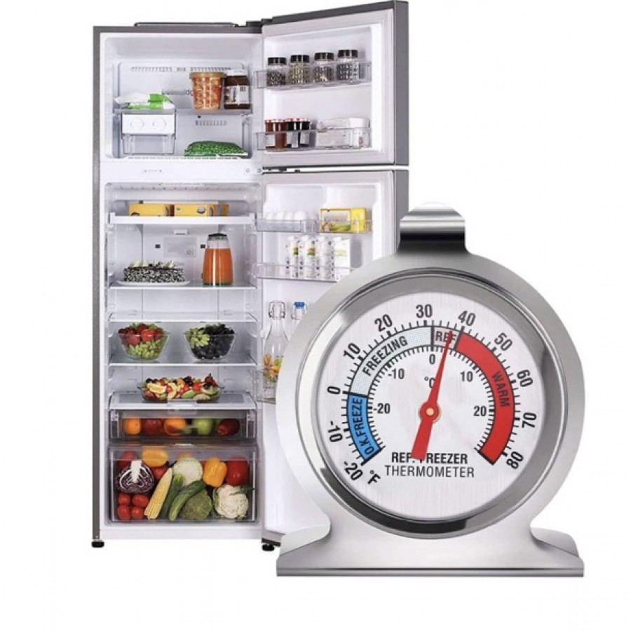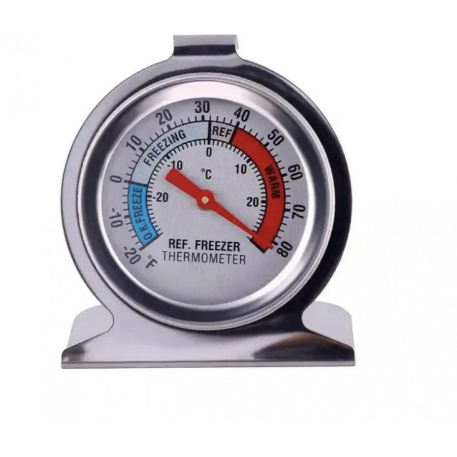 Termometrul pentru frigidere și congelatoare este un instrument de încredere destinat monitorizării temperaturii în echipamentele frigorifice. Se caracterizează printr-o carcasă solidă din oțel inoxidabil și un cârlig practic pentru agățare, fiind ideal atât pentru bucătăriile profesionale din gastronomie, cât și pentru frigiderele și congelatoarele de acasă. Produsul se remarcă printr-un interval larg de măsurare a temperaturii și ușurință la montaj.