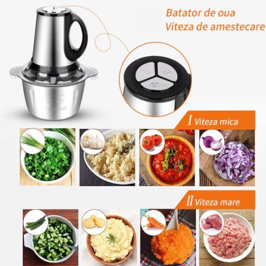 - Capacitate mare de 3L: Bol din inox de inalta calitate, ideal pentru tocare rapida si eficienta a carnii, legumelor, fructelor si nucilor.