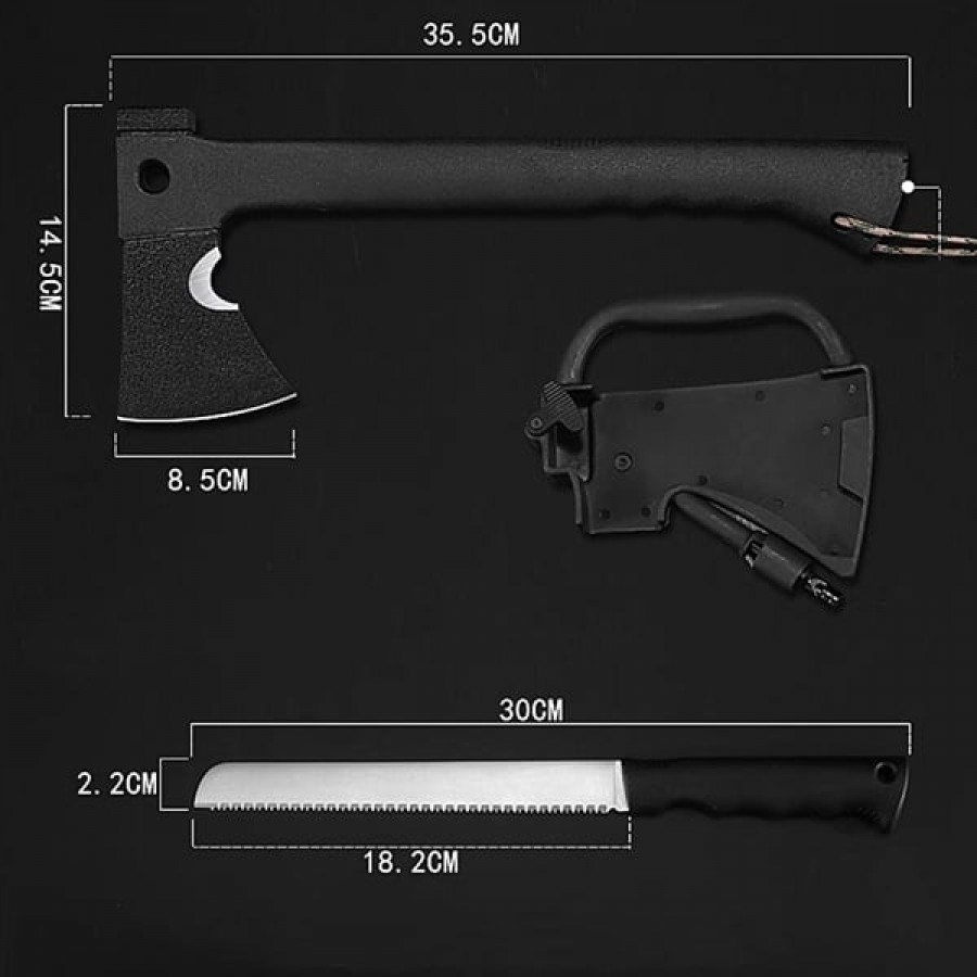 Set topor multifunctional si sabie de vanatoare, DEPOX®, 35,5 cm , teaca inclusa