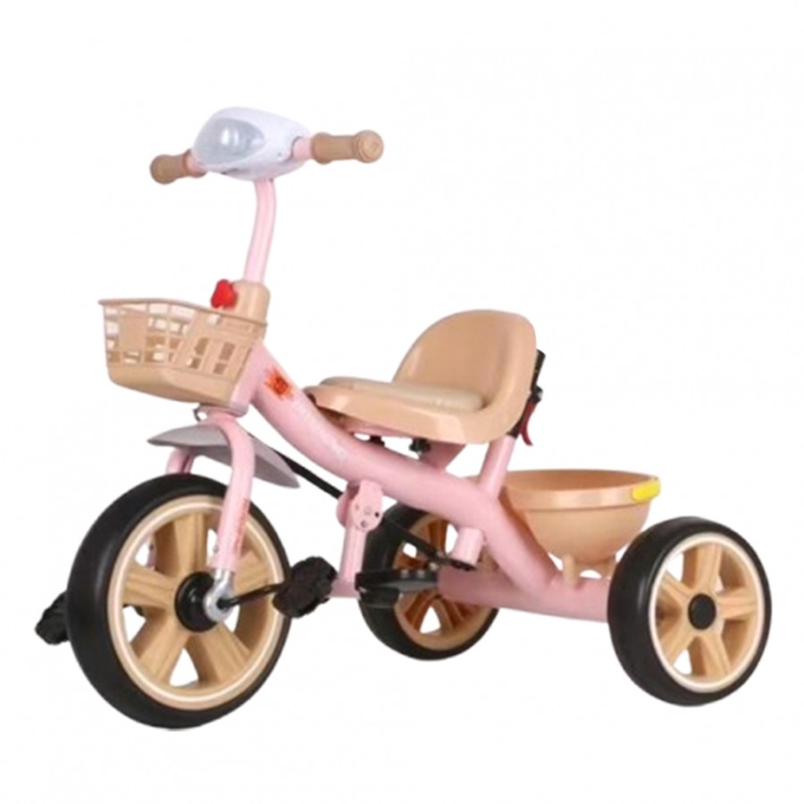 Tricicleta copii 2-5 ani, Roz, Far lanterna led, Suport picioare si doua cosuri jucarii, Roti EVA