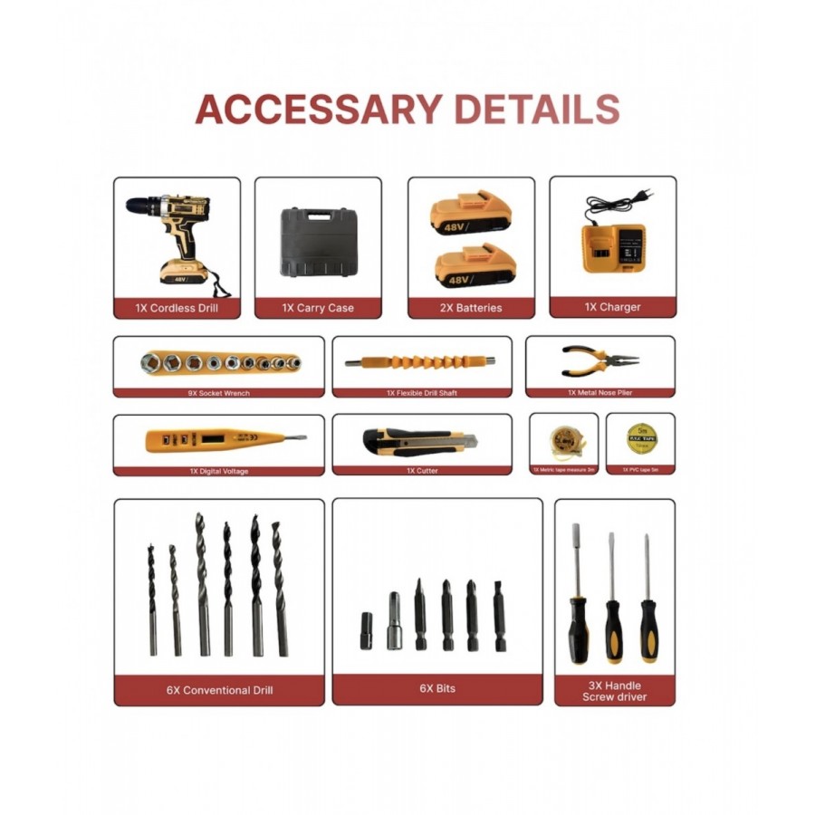 Trusa Scule Completa cu Bormasina Autofiletanta, 2 Acumulatori 48V si Set 24 Accesorii de Mana